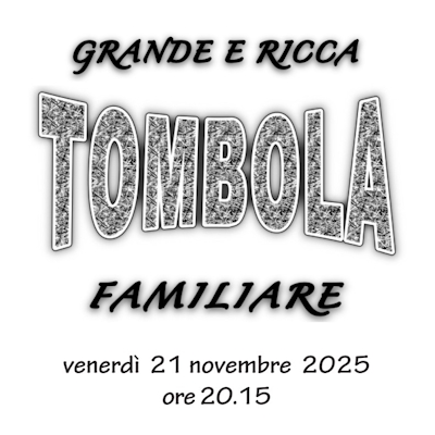 La sezione Scout San Sebastiano vi invita tutti quanti alla grande e ricca tombola familiare, venerdì 21.11.2025, ore 20:15 presso salone parrocchiale di Breganzona.